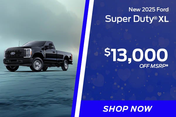 *New 2025 Ford Super Duty model. Get up to $13,000 off MSRP. Includes $1,000 finance assist. Plus tax, tag, title, acquisition fee of $695, and includes a $499 closing fee with approved credit. Not all customers may qualify. See dealer for complete details. Offer ends March 31, 2026.